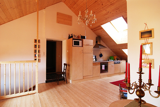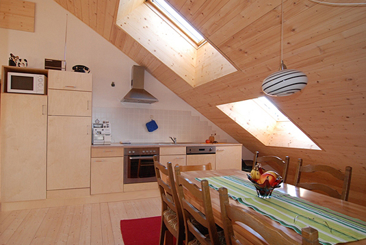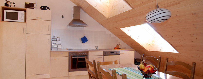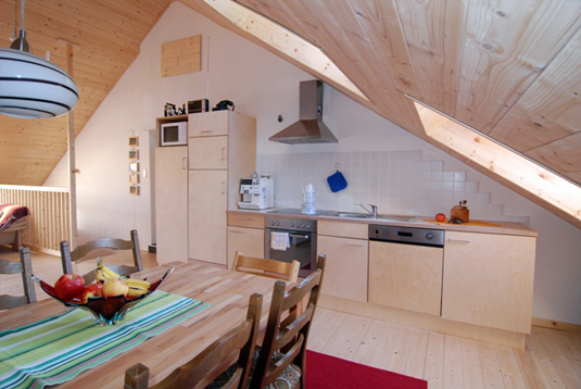 Unsere Vollholzküche ist ausgestattet mit Spülmaschine, Herd, Backofen, Kühlschrank, Gefrierschrank, Mikrowelle, Wasserkocher, Kaffeeautomat und Kaffeemaschine. |