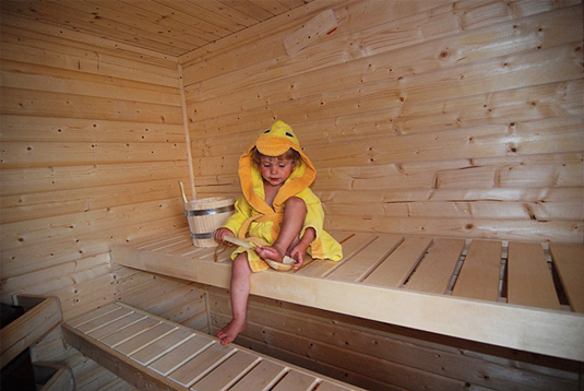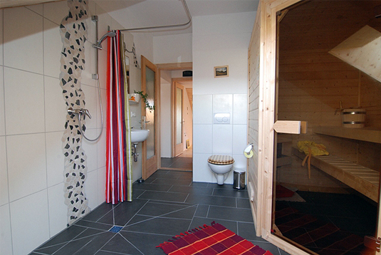 Im größeren der Bäder ist eine Sauna für 4 Personen eingebaut. Entspannen Sie dort nach einem Tag an der frischen Luft! |